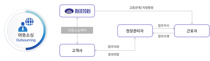 | 구분 | 근로자 파견 | 도급/위탁 등 아웃소싱 | |